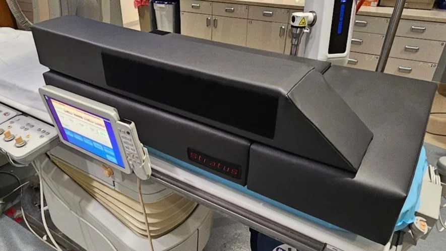 Included is (One) 5"x 24"x31" Base pad, (One) 5"x6"x39" Runway pad with two-sided lead protection (top and lateral side 32"), (One) GE/Philips extension pad 5"x12"x24", (Two) L-shape elavation supports in Black 1/4" ABS and (Two) Hook and Loop hinge straps. This customizable Stratus work surface can be ordered in numerous colors. This product is customizable to fit the needs of your table and lab.