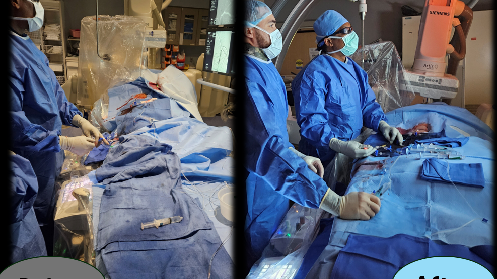 **Newly re-designed physician pad with "cut out" for patients with longer arms. Allows pad to get closer to femoral access site while allowing the right or left hand to have more space.